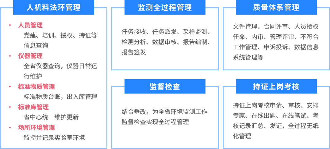 廣東省建立全省統(tǒng)一的監(jiān)測人才庫、儀器設(shè)備庫、監(jiān)測方法庫、評價(jià)標(biāo)準(zhǔn)庫、耗材庫、行業(yè)工藝庫等全省統(tǒng)一的數(shù)據(jù)庫,實(shí)現(xiàn)從采樣、分析、質(zhì)控、審核、簽報(bào)等全過程標(biāo)準(zhǔn)化、無紙化與智能化留痕管理,已在21個(gè)駐市站推廣應(yīng)用,其中7駐市站實(shí)現(xiàn)了無紙化操作,在智慧監(jiān)測取得多項(xiàng)創(chuàng)新突破,為全國做出示范。