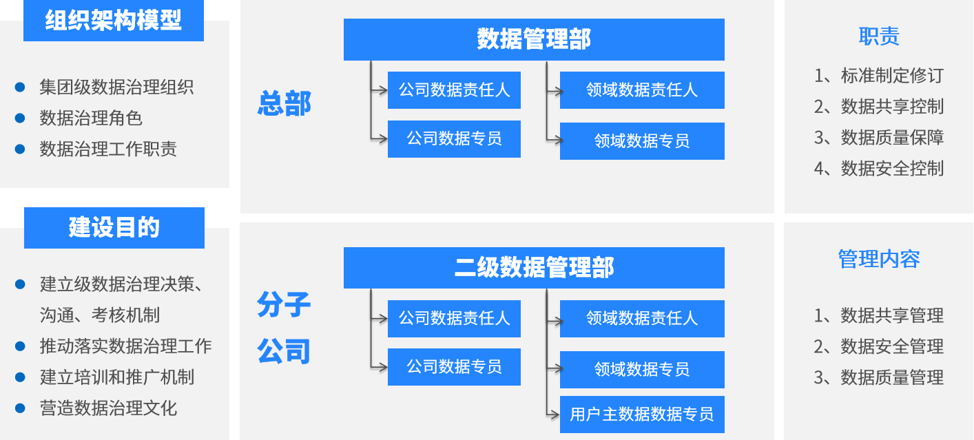 企業(yè)數(shù)據(jù)資產(chǎn)的常態(tài)良性運營,是“管理”+“技術”不斷迭代結合的結果,健全的數(shù)據(jù)管理組織體系及配套的管理制度是企業(yè)數(shù)據(jù)受控和順暢協(xié)同運營的保障。