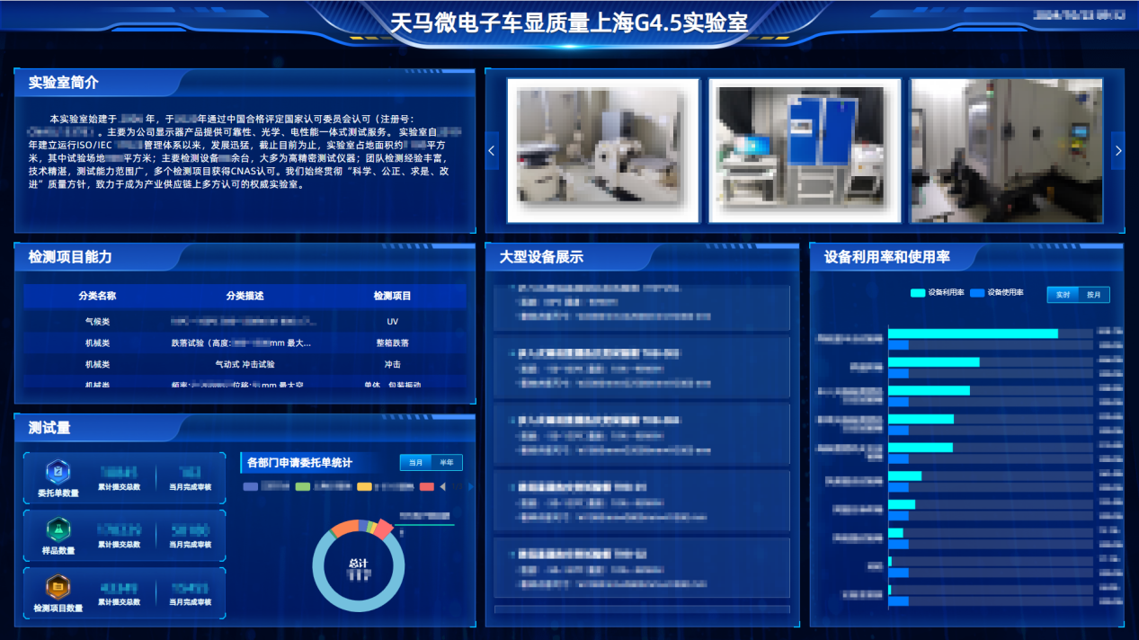 SW-LIMS二期項目,基于上海天馬微電子的多實驗室多基地組織架構,開發(fā)了by基地配置統(tǒng)計報表、對外展示大屏等模塊,分別展示各個基地的實驗室簡介、試驗檢測能力、檢測設備能力、測試以及基地設備的實時利用率和使用率。不同基地之間增加了互轉(zhuǎn)委托單功能,支持將原本排程到A基地的委托單轉(zhuǎn)到B基地,減輕某基地的檢測壓力。整體上為實驗室的資源展示、調(diào)控提供了強有力的支撐。