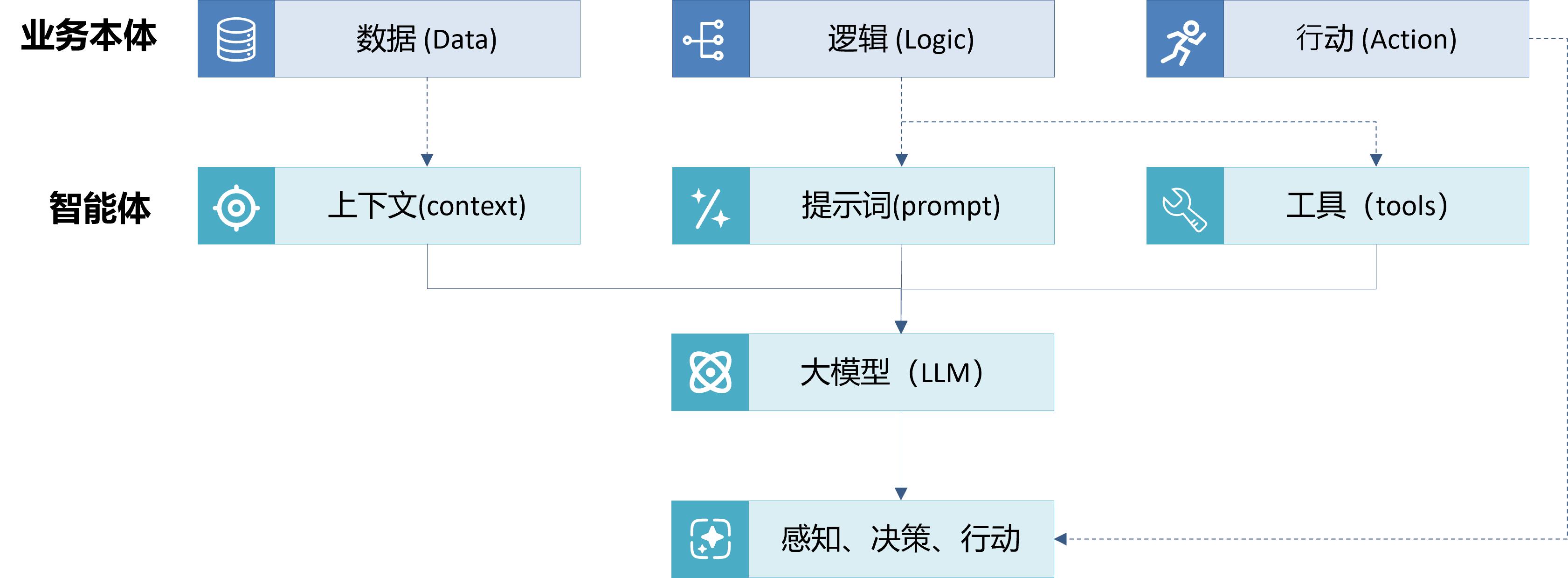 三維天地“SunwayLink”平臺(tái)基于業(yè)務(wù)本體技術(shù)構(gòu)建具備感知、決策、行動(dòng)能力的智能體,將數(shù)字孿生體作為上下文、將業(yè)務(wù)邏輯拆分為提示詞和可執(zhí)行的工具,大模型基于上下文信息、提示詞的限制和要求、調(diào)用工具實(shí)現(xiàn)特定業(yè)務(wù)場(chǎng)景的信息處理,實(shí)現(xiàn)業(yè)務(wù)自動(dòng)化和智能化。